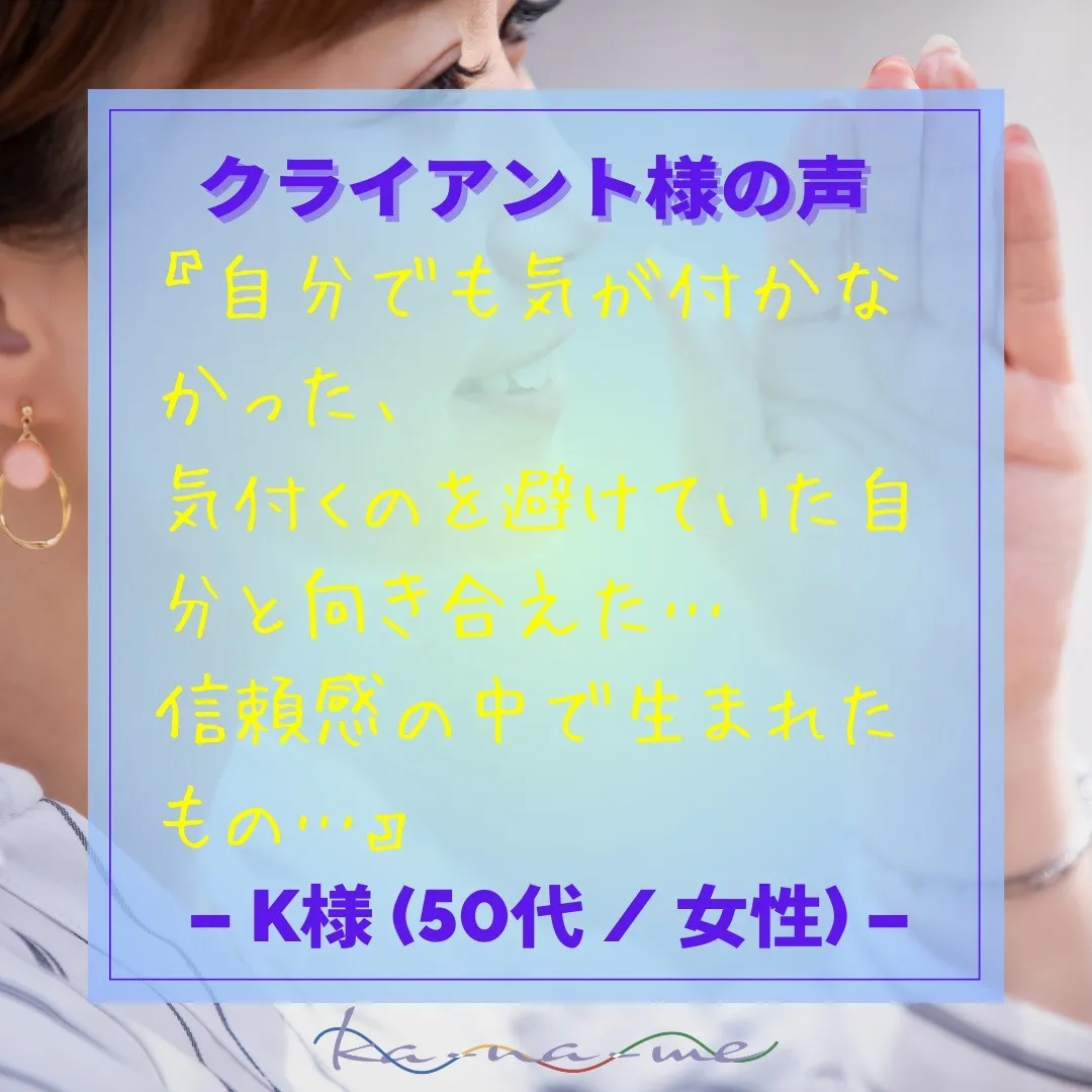 : :お客様の声―K様(女性/50代)―チネイザン(75分)コースをご利用『自分でも気が付かなかった、気付くのを避けていた自分と向き合えたのも、信頼感の中で生まれたもの…』**********************************…